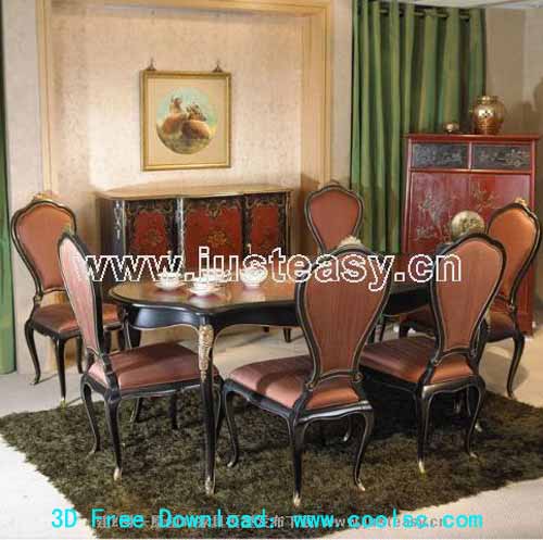 Description:Low-key style, luxury dining table and chair combination, furniture, table, 3D model