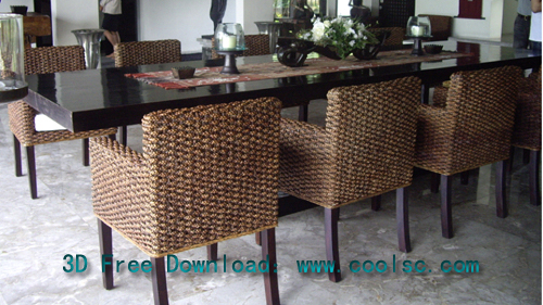 Description:Southeast Asian style, dining tables and chairs, restaurant, model download, 3D model