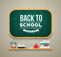Description:Cartoon classroom building back to school poster vector material