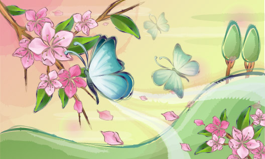 Description:South Korea Vector Landscape material - Flower and Butterfly