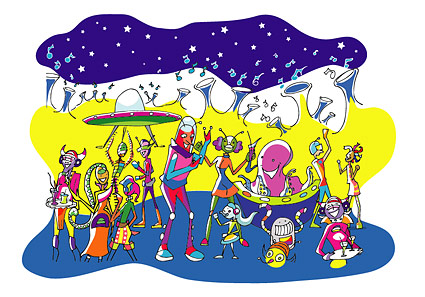 KeyWords:Aliens, cartoon illustrations,