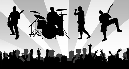 Band material with the enthusiasm of the audience silhouette