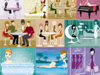 6 female illustrator vector material