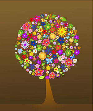 Description:Composed of colorful flowers, the trees vector material