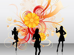 Female silhouette vector fashion flowers background material