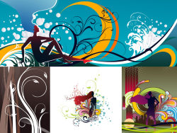 Trend pattern and female silhouettes vector material