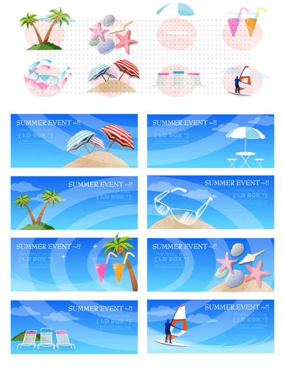 Description:Summer Seaside Beach Theme Vector Icons