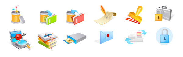 Description:Trash, books, writing, seals, locks and other vector icon