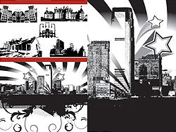 Black and white silhouette of urban architecture - Vector