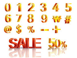 Color three-dimensional letters and numbers vector material