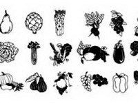 Black and white line drawing of fruits and vegetables Vector