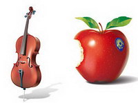 Realistic violin and red apples vector material