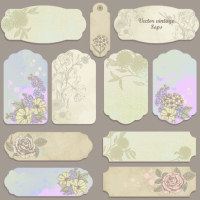 Vintage floral label 01 - vector material
