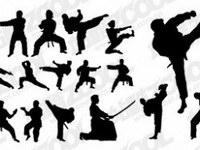 Kung fu martial arts action figure silhouettes vector materi