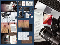 Cameras, notebooks, newspapers, magazines and other vector m