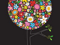 The composition of trees, colorful flowers Vector material