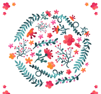 Watercolor flowers and leaves vector material